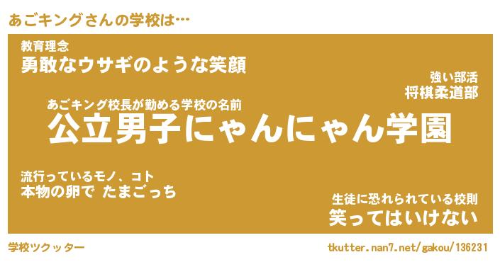 | ファンタジー風あだ名 | 『アゴフェル』『エターナルアゴキングー』 |
