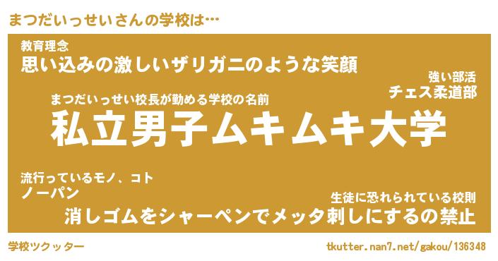 | 男性向けラノベタイトル風あだ名 | 『まつだいっせいの憂鬱』 |