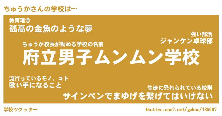 | ヒーロー風カッコイイあだ名 | 『スーパーチュウカ』『銀牙騎士チュ』 |