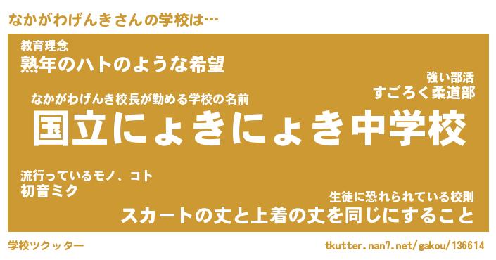 | 男性向けラノベタイトル風あだ名 | 『なかがわげんきの憂鬱』 |