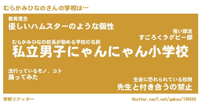 | 男性向けラノベタイトル風あだ名 | 『むらかみひなのの憂鬱』 |