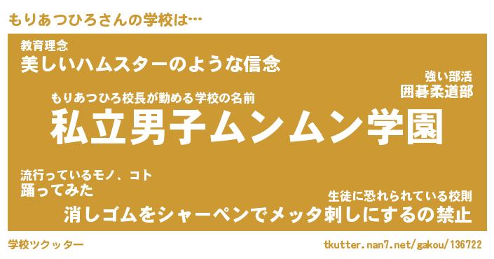 | ヒーロー風カッコイイあだ名 | 『スーパーモリアツヒロ』『銀牙騎士モリ』 |