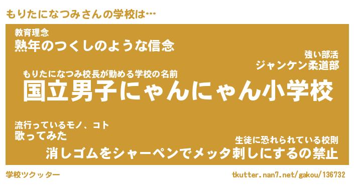 | ヘコむあだ名 | 『もりもー』『つくし』『もりを』 |