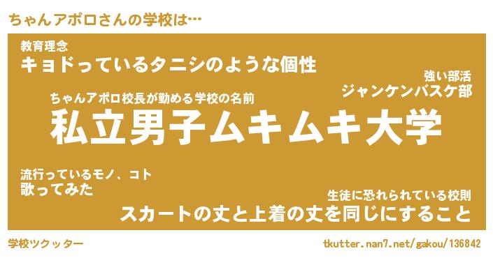 | 男性向けラノベタイトル風あだ名 | 『ちゃんアポロの憂鬱』 |