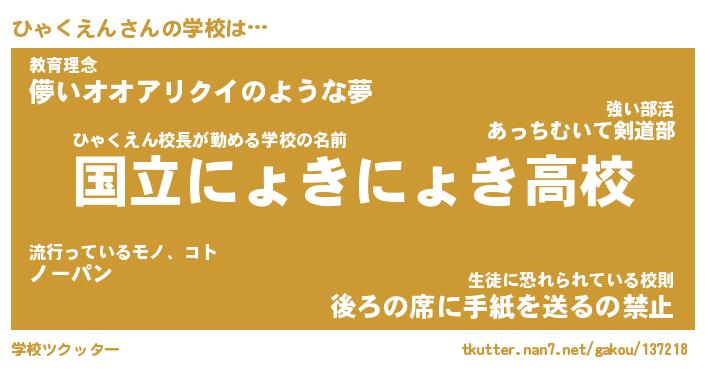 | ひゃくえん先生が勤める学校名『国立もふもふ高校』 |