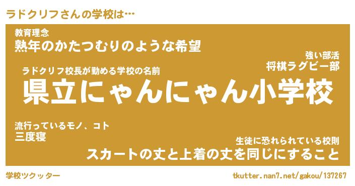 | 男性向けラノベタイトル風あだ名 | 『ラドクリフの憂鬱』 |