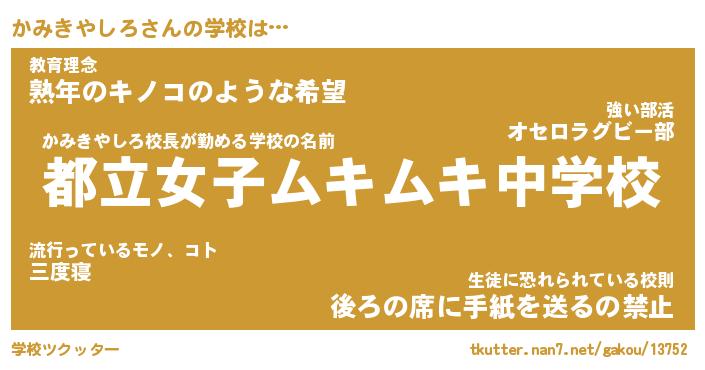 | ヒーロー風カッコイイあだ名 | 『スーパーカミキヤシロ』『黄金騎士カミ』 |