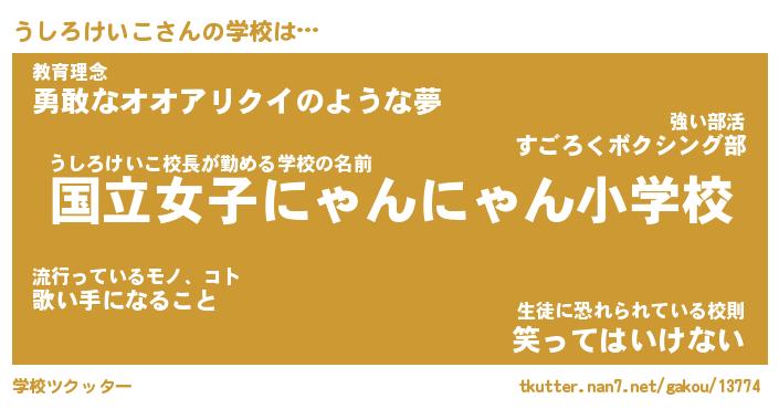 | 女子向けラノベタイトル風あだ名 | 『誰かこのうしろけいこを説明してください! ~契約から始まるウェディング~』 |