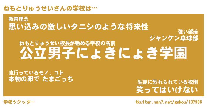 | 欧米人風あだ名 | 『マイケルねもとりゅうせい』 |
