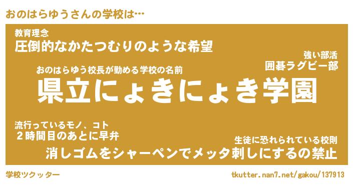| 男性向けラノベタイトル風あだ名 | 『おのはらゆうの憂鬱』 |