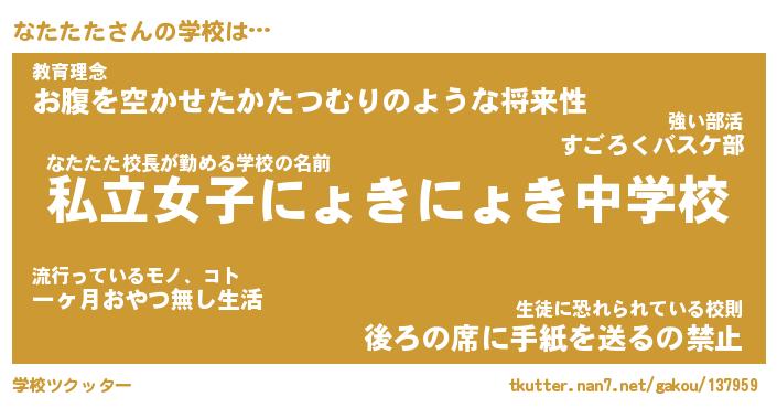 | ヘコむあだ名 | 『なたにゅー』『酢こんぶ』 |