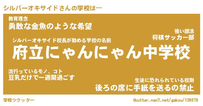 | 男性向けラノベタイトル風あだ名 | 『シルバーオキサイドの憂鬱』 |