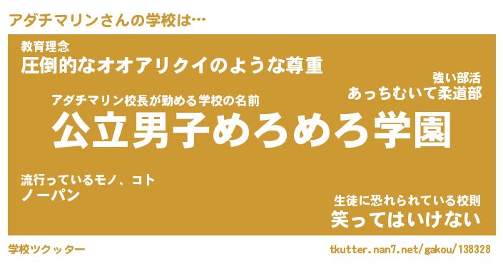| 男性向けラノベタイトル風あだ名 | 『アダチマリンの憂鬱』 |