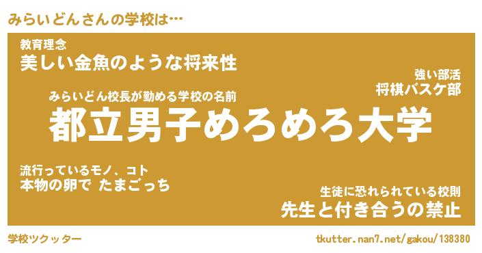 | 胡散臭い通販商品みたいなあだ名 | 『モテモテ間違いなし霊験あらたかなお札…その名も「みらいどん」』 |