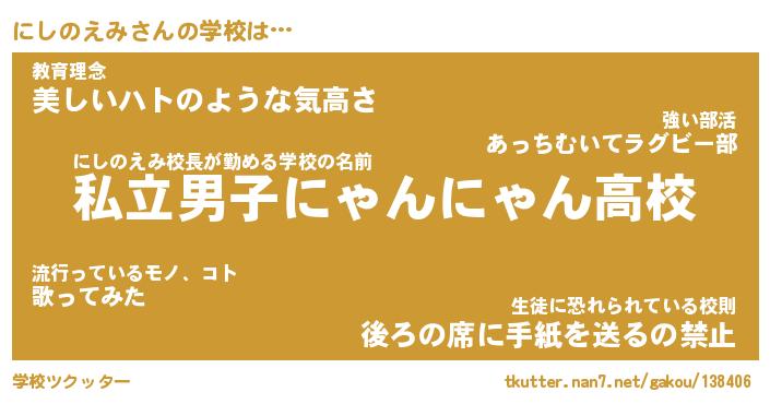| 肩書あだ名 | 『にしのえみ社長令嬢』『にしのえみ塾長』 |