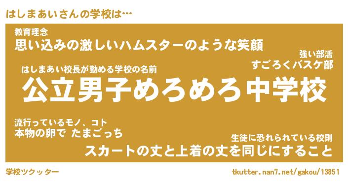 | 公立男子ムキムキ中学校は(略 …「」 | 10月03日 07:36 |