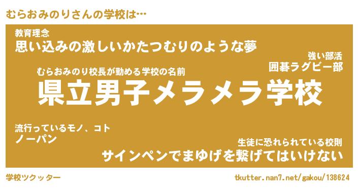 | ヒーロー風カッコイイあだ名 | 『スーパームラオミノリ』『天弓騎士ムラ』 |