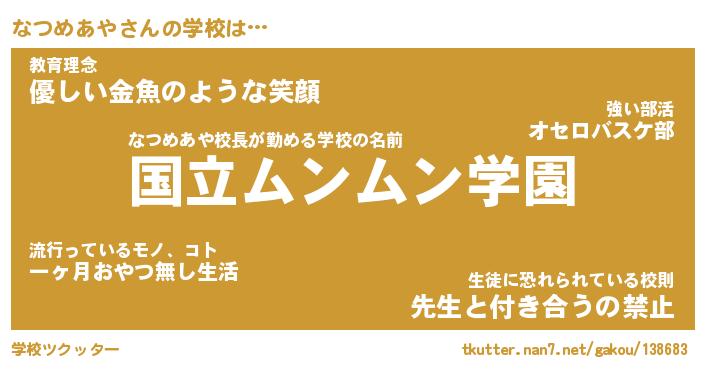 | ファンタジー風あだ名 | 『ナツフェル』『エターナルナツメアヤー』 |