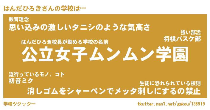 | ポケモン風あだ名 | 『ハンチュウ』『ハンダダネ』 |