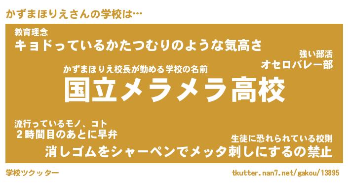 | 男性向けラノベタイトル風あだ名 | 『かずまほりえの憂鬱』 |