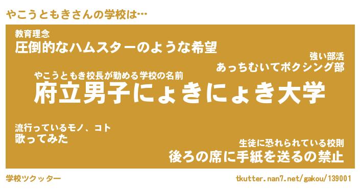 | 肩書あだ名 | 『やこうともき店長』『やこうともき教頭』 |