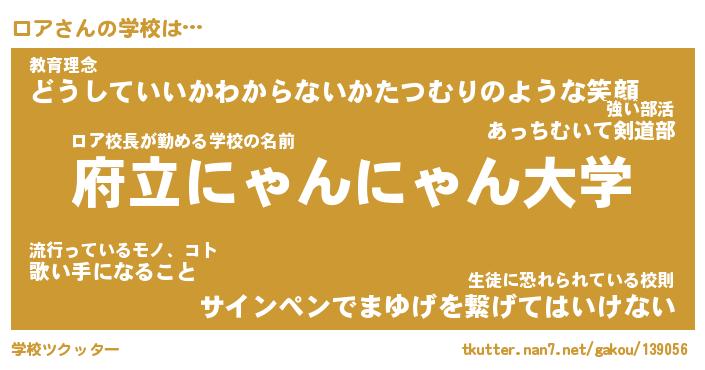 | 男性向けラノベタイトル風あだ名 | 『ロアの憂鬱』『ノーゲーム・ノーロア』 |