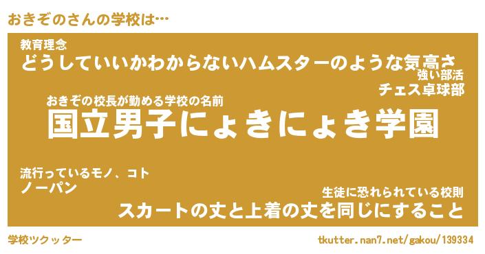 | 男性向けラノベタイトル風あだ名 | 『おきぞのの憂鬱』 |