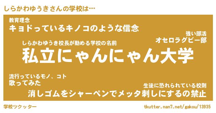 | 男性向けラノベタイトル風あだ名 | 『しらかわゆうきの憂鬱』 |