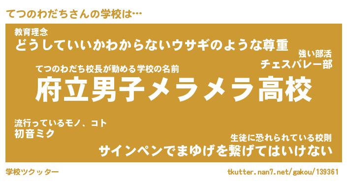 | 男性向けラノベタイトル風あだ名 | 『テツノワダチアートオンライン』 |