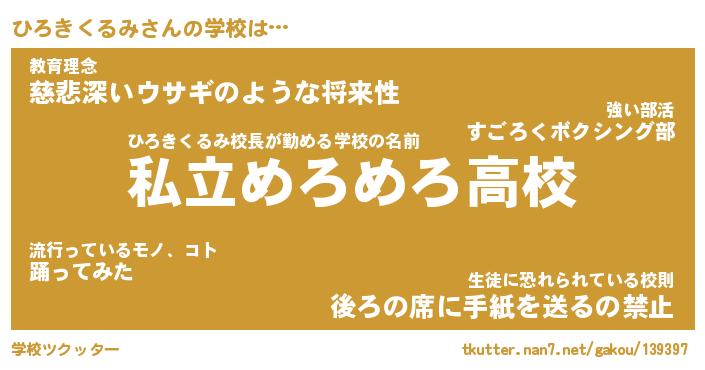 | 伝説のあだ名 | 『伝説のスナイパーひろきくるみ』 |