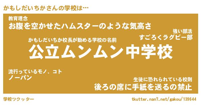 | ヒーロー風カッコイイあだ名 | 『スーパーカモシダイチカ』 |