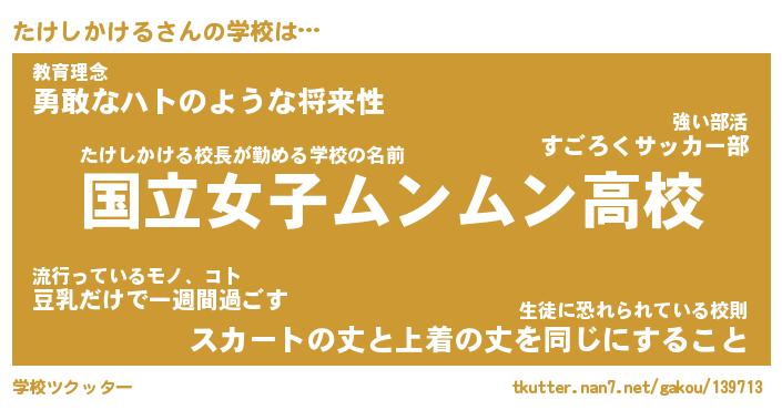 | 男性向けラノベタイトル風あだ名 | 『タケシカケルアートオンライン』 |