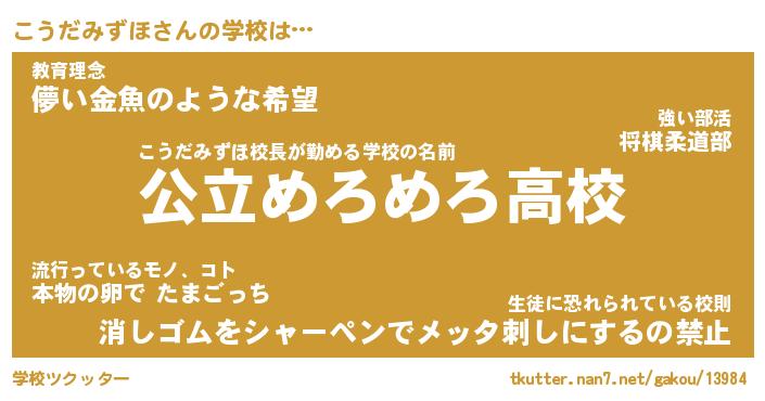 | 伝説のあだ名 | 『伝説のスナイパーこうだみずほ』 |