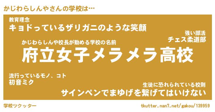 | 肩書あだ名 | 『かじわらしんや社長』 |