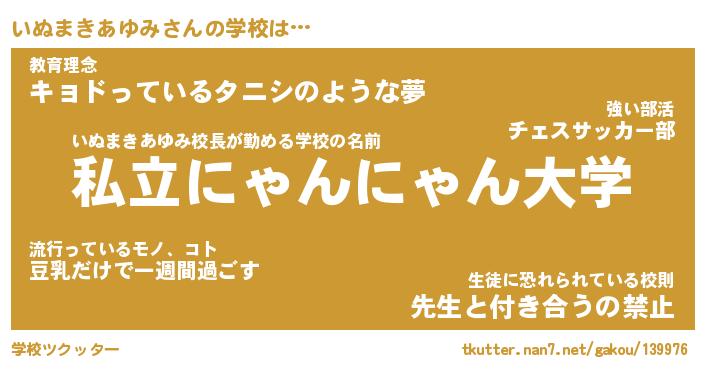 | 伝説のあだ名 | 『伝説のスナイパーいぬまきあゆみ』 |