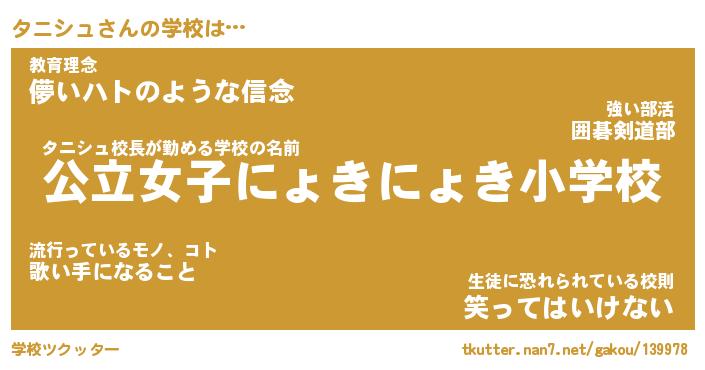 | ヒーロー風カッコイイあだ名 | 『スーパータニシュ』『暗黒騎士タニ』 |