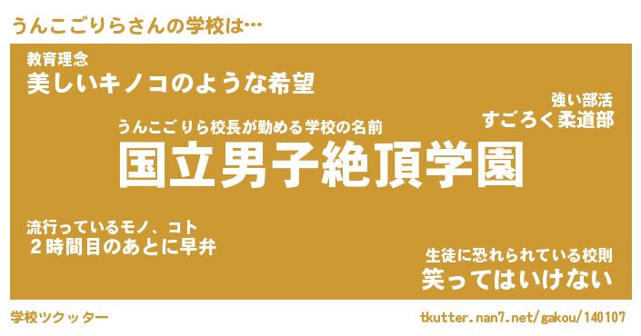 | 男性向けラノベタイトル風あだ名 | 『うんこごりらの憂鬱』 |