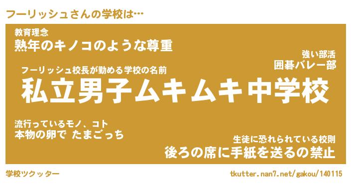 | 男性向けラノベタイトル風あだ名 | 『フーリッシュの憂鬱』 |