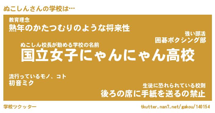 | ファンタジー風あだ名 | 『ヌコフェル』『エターナルヌコシンー』 |