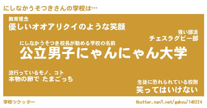 | ピコ太郎風あだ名 | 『ニコ四郎』『ピニ二郎』『ニシ太郎』 |