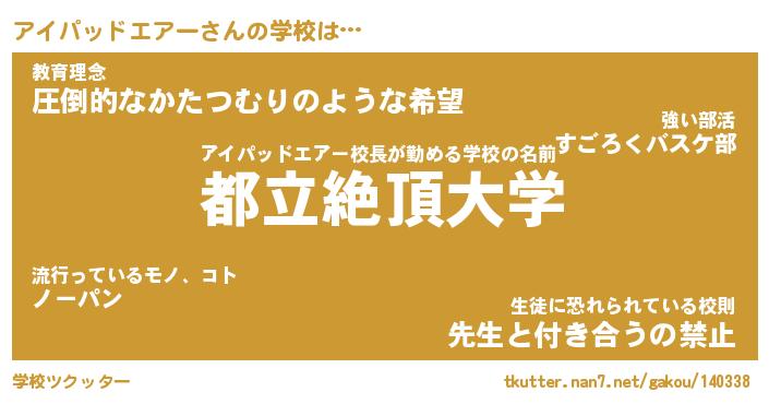 | 女子向けラノベタイトル風あだ名 | 『(仮)アイパッドエアーのやんごとなき事情』 |