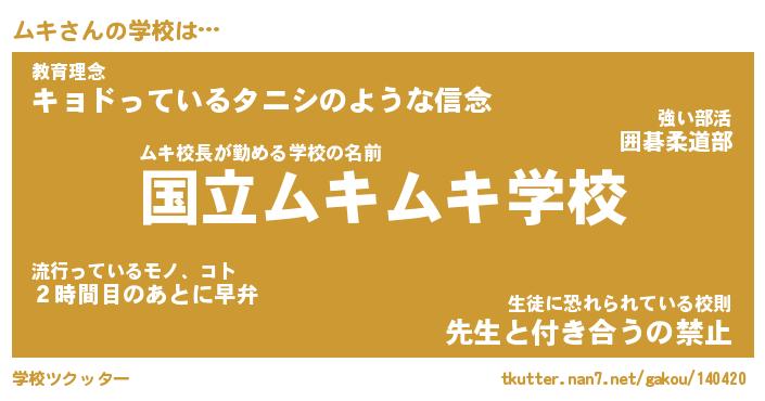 | 男性向けラノベタイトル風あだ名 | 『ムキの憂鬱』 |