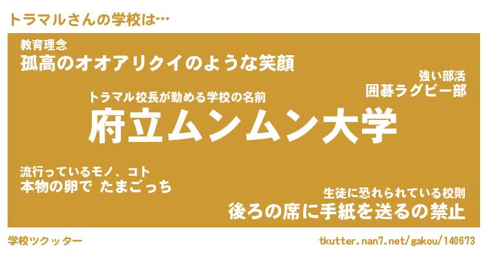 | 男性向けラノベタイトル風あだ名 | 『トラマルの憂鬱』 |
