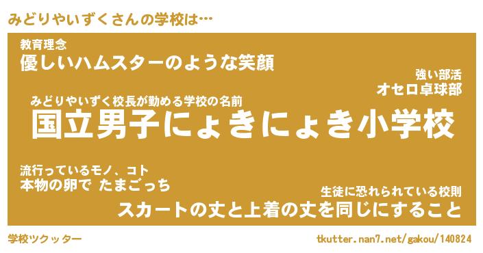 | 男性向けラノベタイトル風あだ名 | 『みどりやいずくの憂鬱』 |