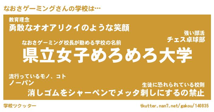 | 男性向けラノベタイトル風あだ名 | 『ナオサゲーミングアートオンライン』 |