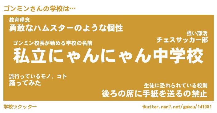 | 男性向けラノベタイトル風あだ名 | 『ゴンミンの憂鬱』 |