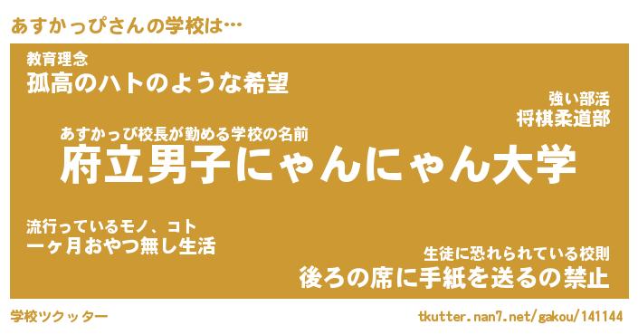 | ヘコむあだ名 | 『あすもー』『つくし』『あすっ子』 |