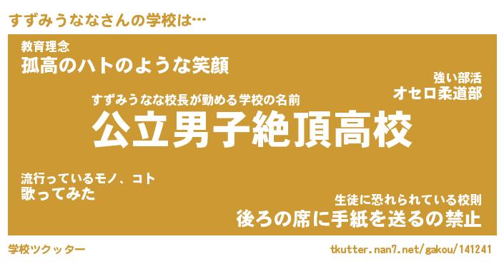 | 女子向けラノベタイトル風あだ名 | 『すずみうなな姫と円卓の騎士』 |