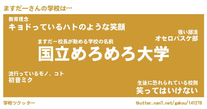 | 意味不明あだ名 | 『ペロリンますだー』『永久保存ますだー』 |