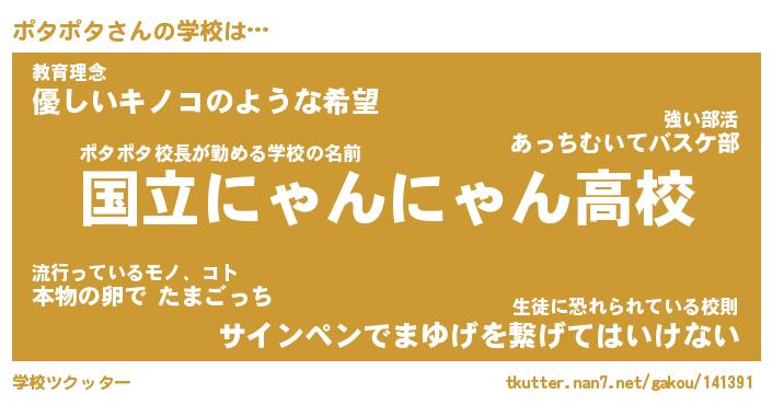 | ヘコむあだ名 | 『ポタもー』『豆乳』『ポタを』 |